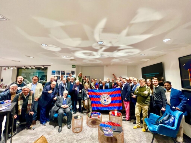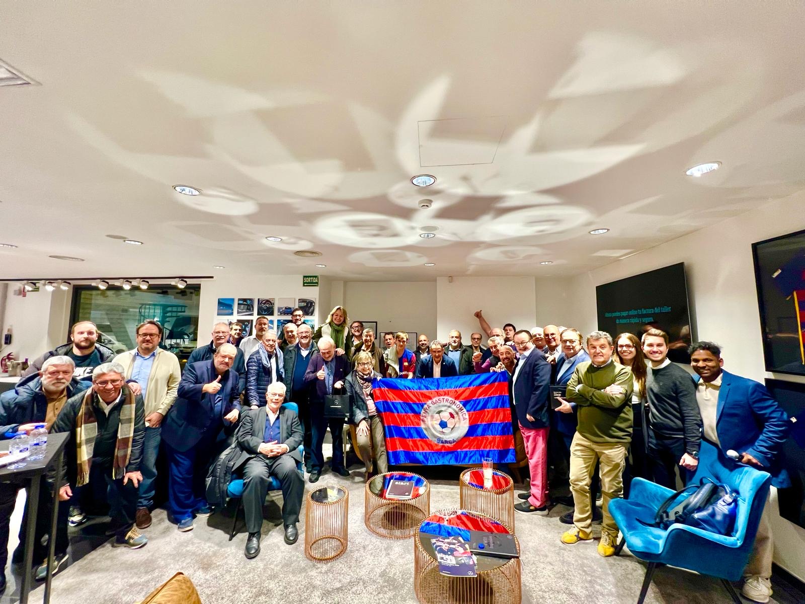 Cuando no se puede viajar para seguir el Barça en sus partidos de Champions, los peñistas se juntan en un lugar singular para disfrutar de los 90 minutos de emoción alrededor de la mejor gastronomía. Esta vez han elegido las instalaciones de Mercedes-Benz LG Barcelona ubicadas en Calle Dr. Fleming, 25. Sesenta miembros acudieron el pasado 21 de febrero y vibraron durante el partido.